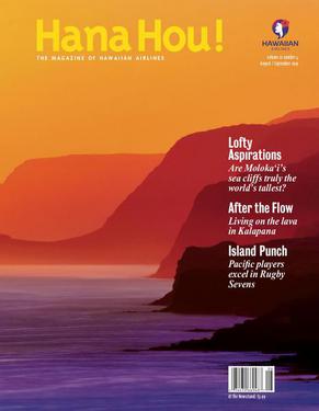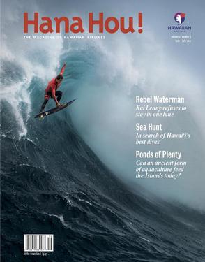 To celebrate the 90th anniversary of Hawaiian Airlines, this special issue of Hana Hou! features an interview with new CEO Peter Ingram and stories about the airline's initivatives to fly greener, its female pioneers in aviation and the ways Hawaiian stays true to its Island roots even as it expands to new and farther destinations. Also in this issue, a Polynesian-inspired canoe tackles Alaska's Inside Passage in one of the world’s most challenging ocean races; exploring the origins of the ‘ukulele in Madeira, Portugal; high school football reaches its peak in Honolulu’s Polynesian Bowl; planting native oysters to clean the waters of Pearl Harbor; a small Hawai’i Island town restores a beloved work of art; and how one small electrical utility on Kaua’i is in the vanguard of green energy.